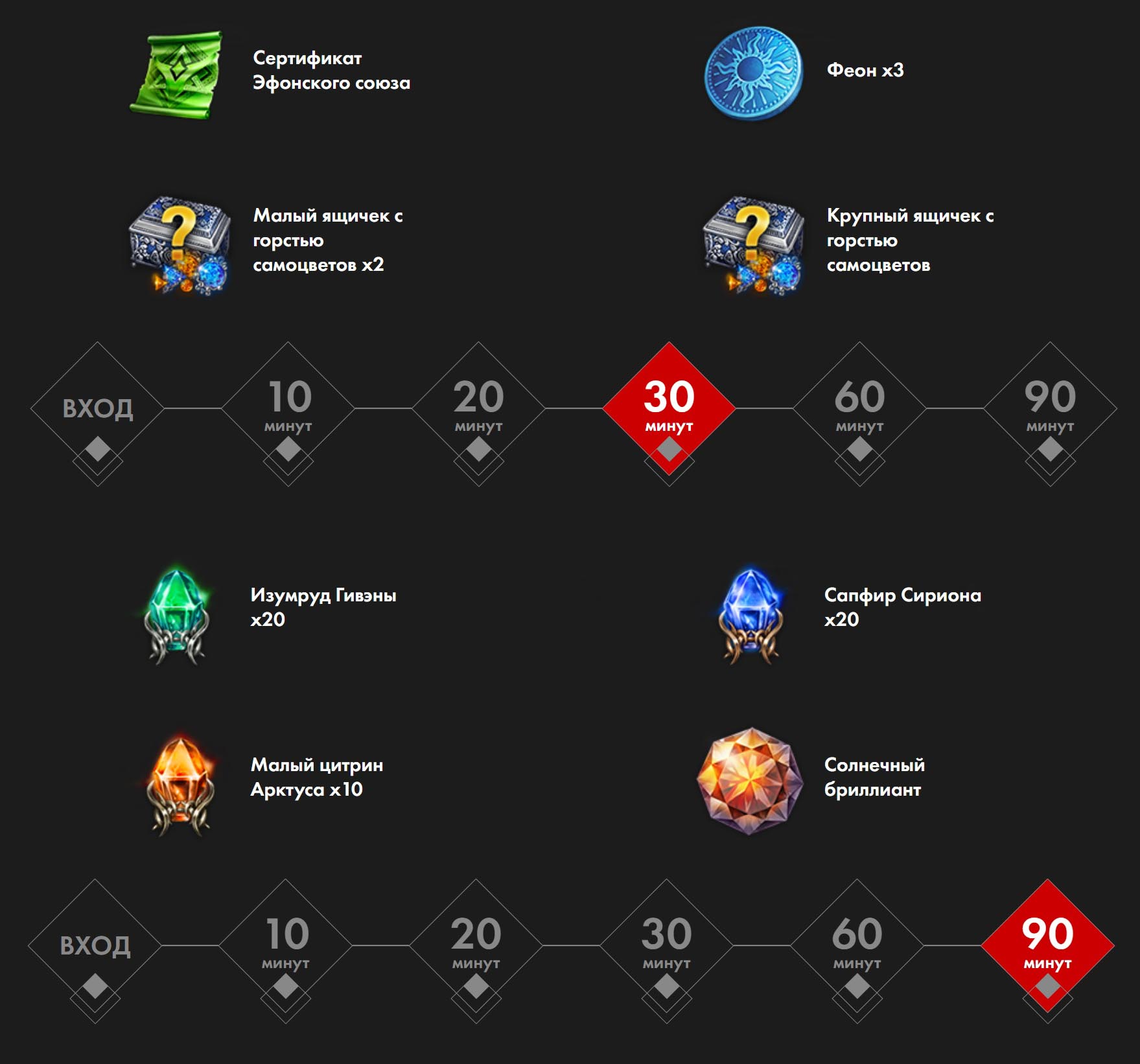 - Средний ларец Вахантура (на выбор: 320 Изумрудов Гивэны, 320 Сапфиров Сириона или 200 малых цитринов Арктуса).