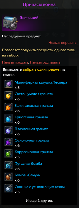 - Припасы воина, 5 шт.