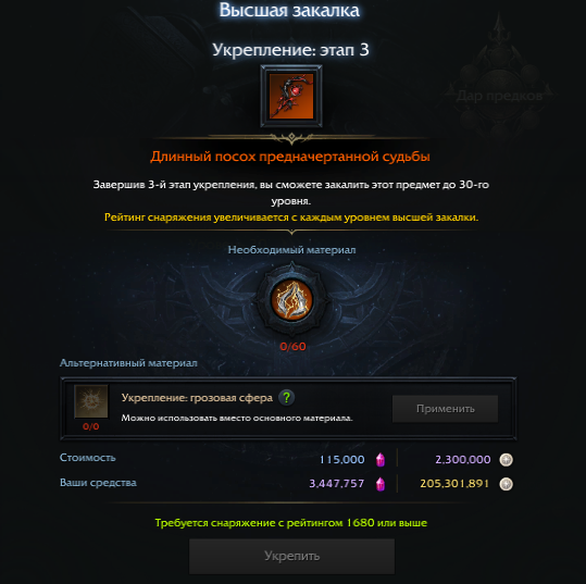 - оружие — 60 предметов «Укрепление: грозовая сфера».