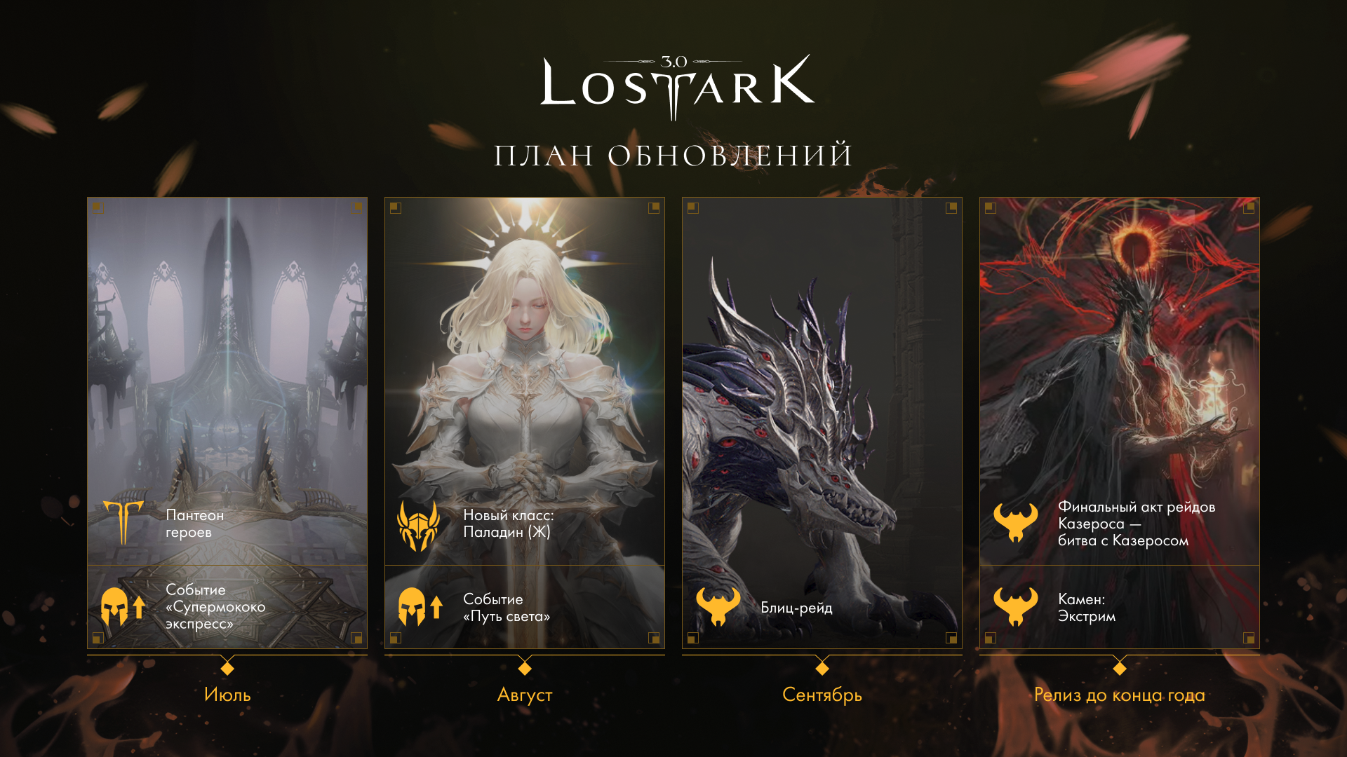 План обновлений подготовлен совместно со Smilegate RPG, разработчиком LOST ARK, и является нашим общим видением того, в какой последовательности должны устанавливаться обновления. План может дополняться и претерпевать изменения, о которых мы обязательно предупредим.