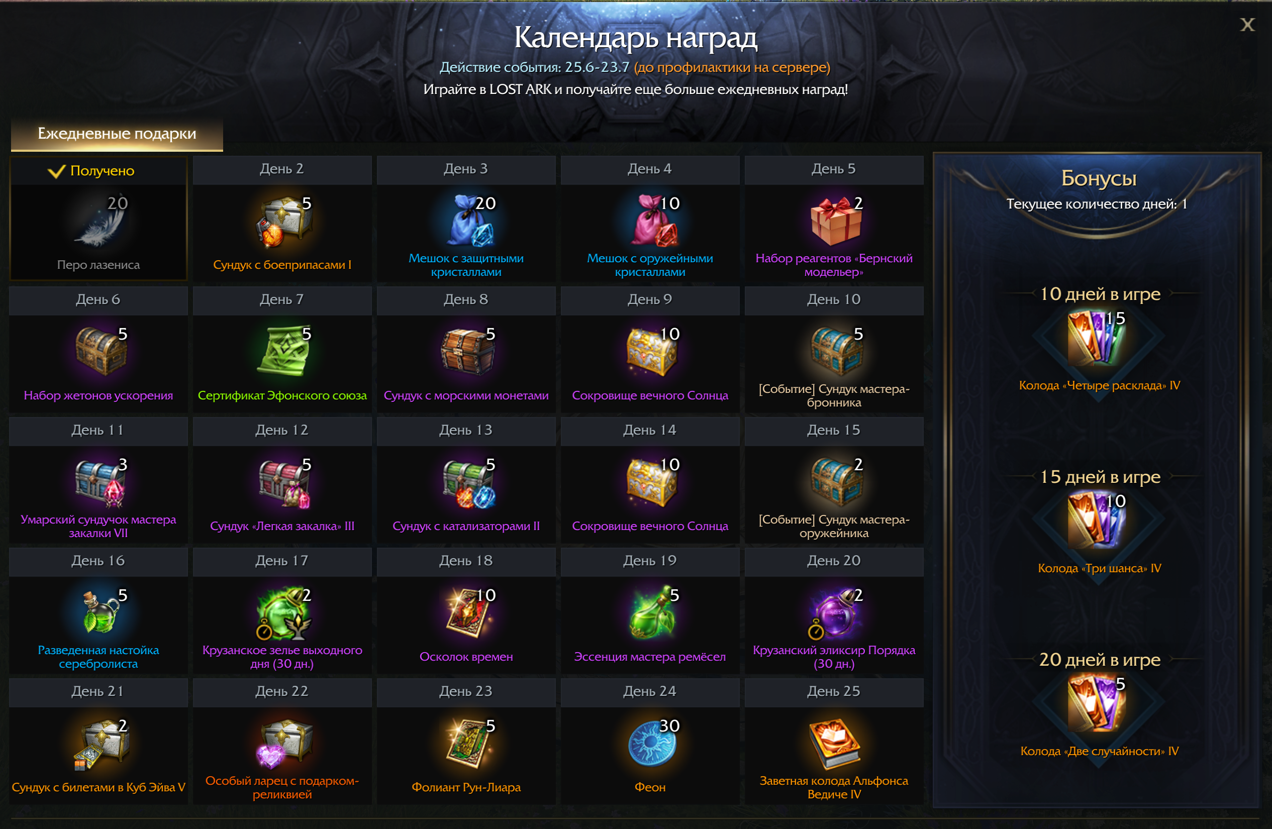 Новички и Искатели, которые давно не были в LOST ARK, найдут дополнительные подарки в особом календаре. Зовите своих друзей в LOST ARK, чтобы они смогли получить приятные подарки!