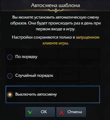 Будет реализована функция автоматической смены шаблонов образов — ежедневно после 6:00 утра при входе в игру система будет применять следующий шаблон из очереди.