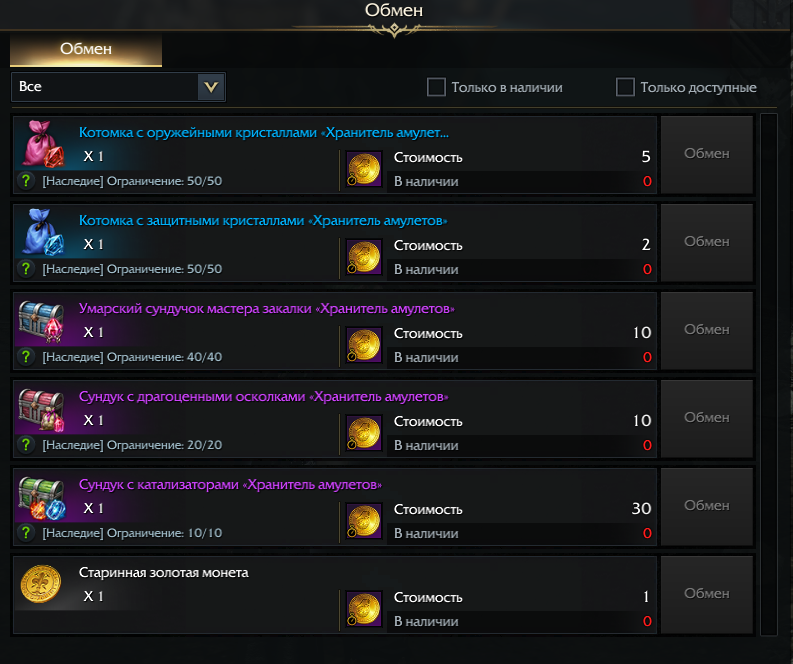 Следующие амулеты будут автоматически конвертированы в Жетоны хранителя амулетов: