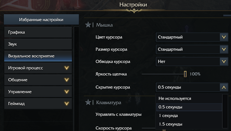 Пользователи смогут настроить временной интервал до исчезновения курсора в разделе: Настройки → Визуальное восприятие → Мышка. Установленное значение будет сохраняться на уровне всего Наследия и применяться ко всем персонажам игрока в рамках сервера.