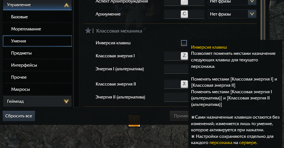 Изменения будут применяться индивидуально для каждого персонажа. Если на эти клавиши назначены макросы, система автоматически адаптирует их под новую конфигурацию.