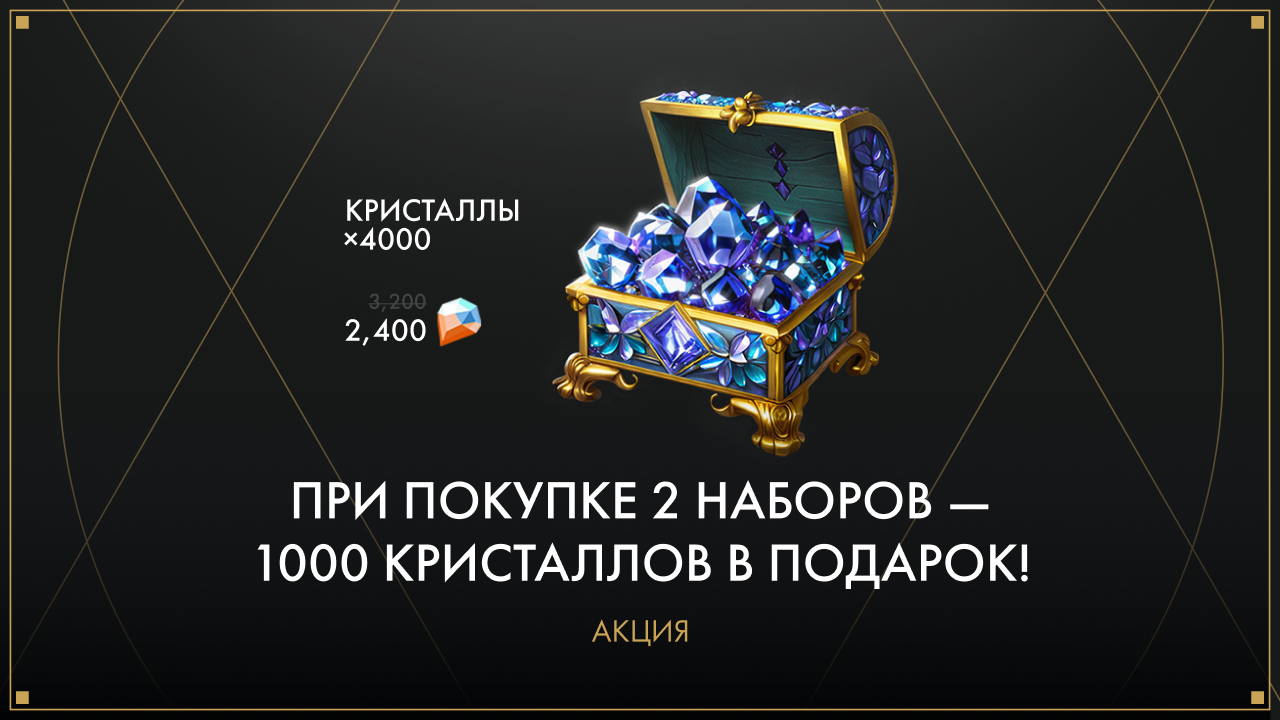 [Обновлено 13.08] Предложение для наборов с кристаллами доступно до 06:00 мск 3 сентября, а для товаров в Бонусной комнате — до 06:00 мск 20 августа.