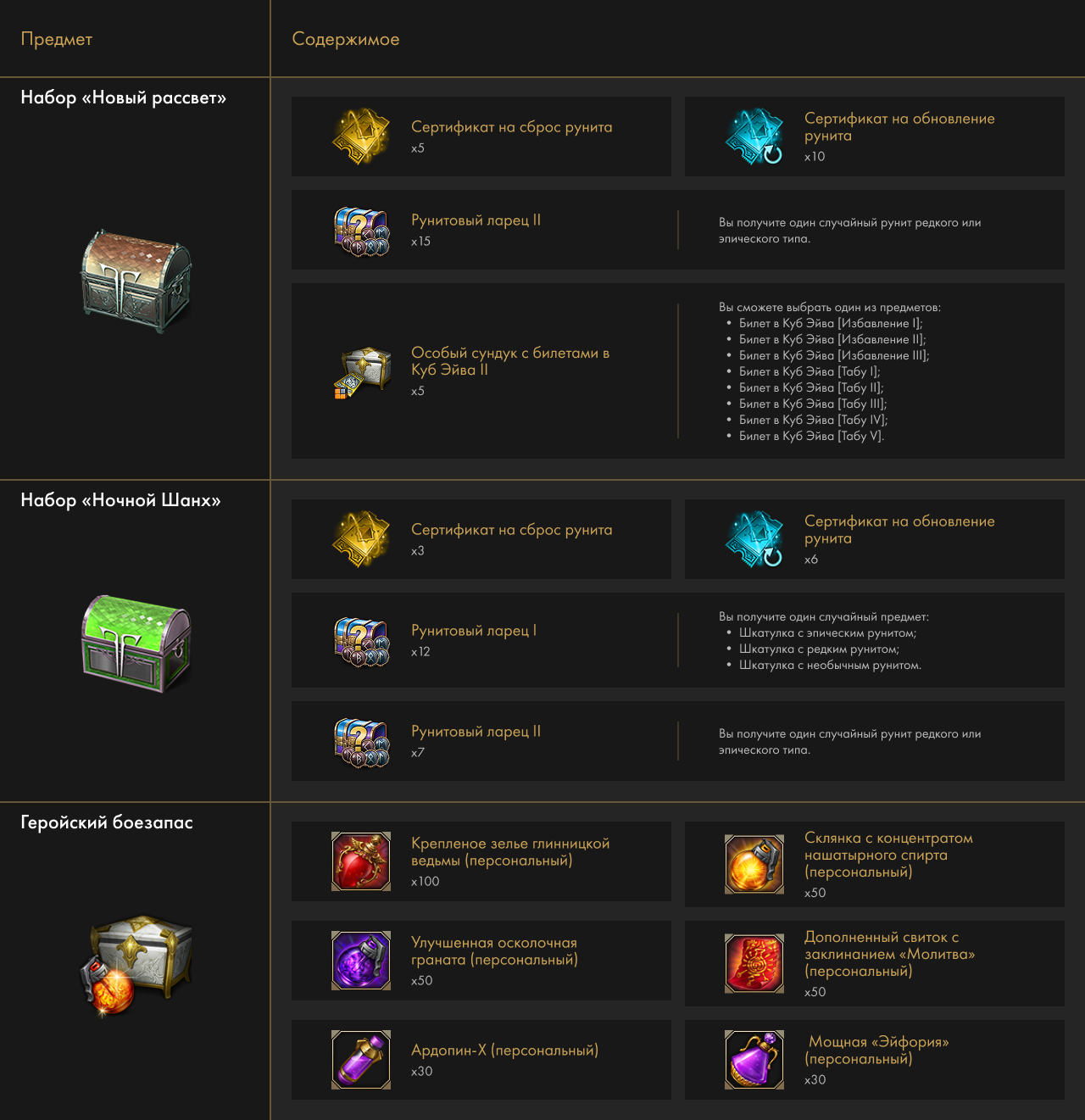 В результате технических работ изменился ассортимент игрового магазина. Вас ждет коллекция предметов Боевого Пропуска «Ночная охота» и различные наборы с ресурсами для развития вашего персонажа. Посетите разделы «Хиты» и «Наборы» в игровом магазине — и воспользуйтесь выгодными предложениями!