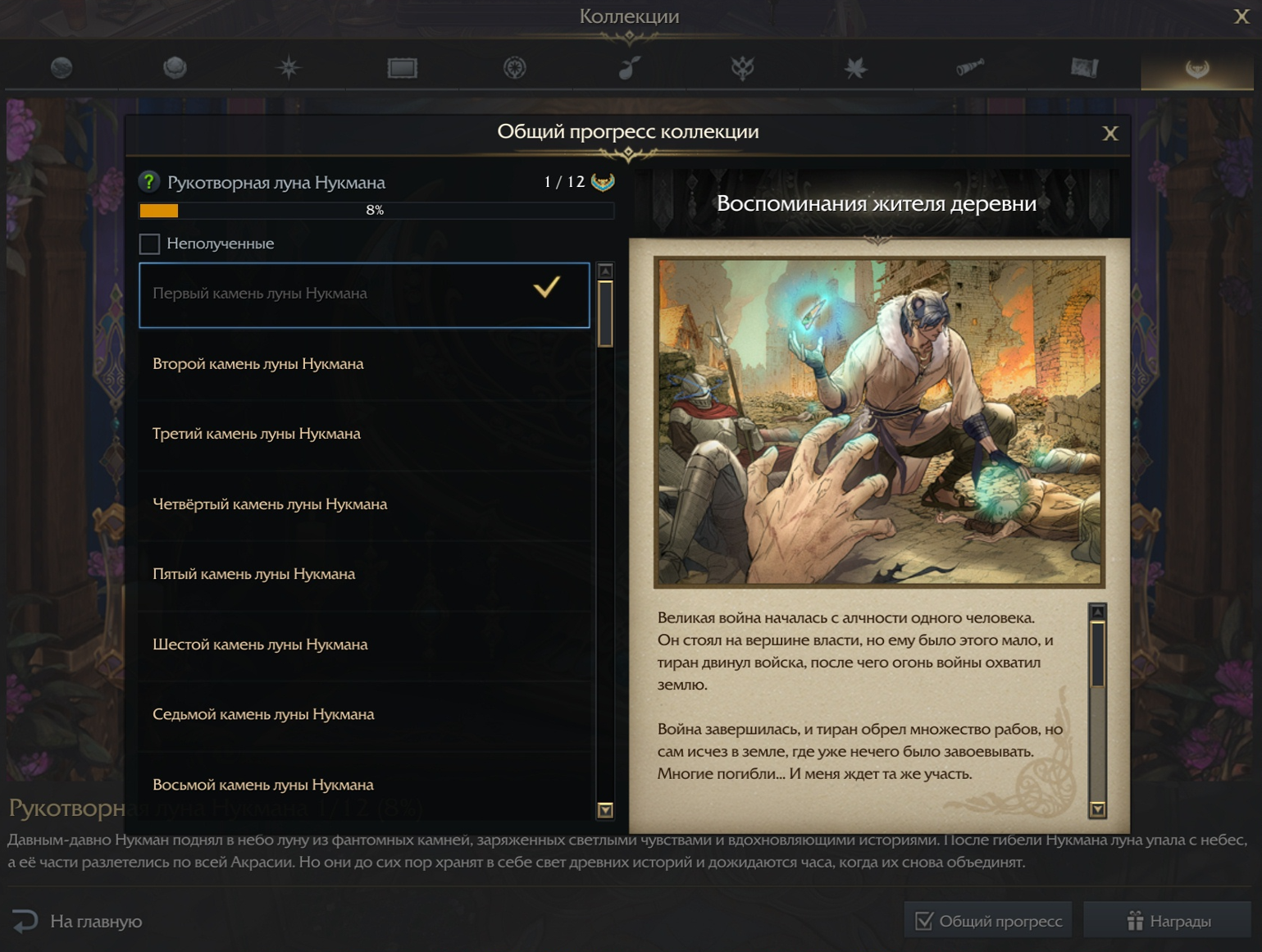 Завершив первое задание, вы откроете коллекцию «Луна Нукмана». Новые фрагменты фантомных камней можно будет получать, выполняя различные задания в разных уголках Акрасии.