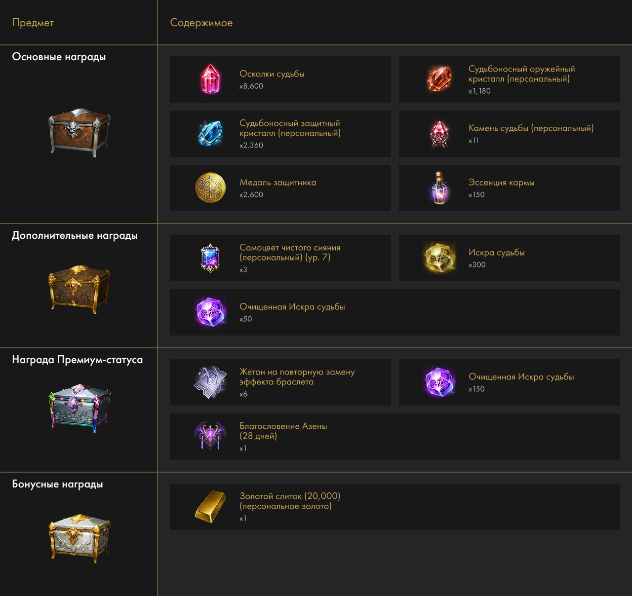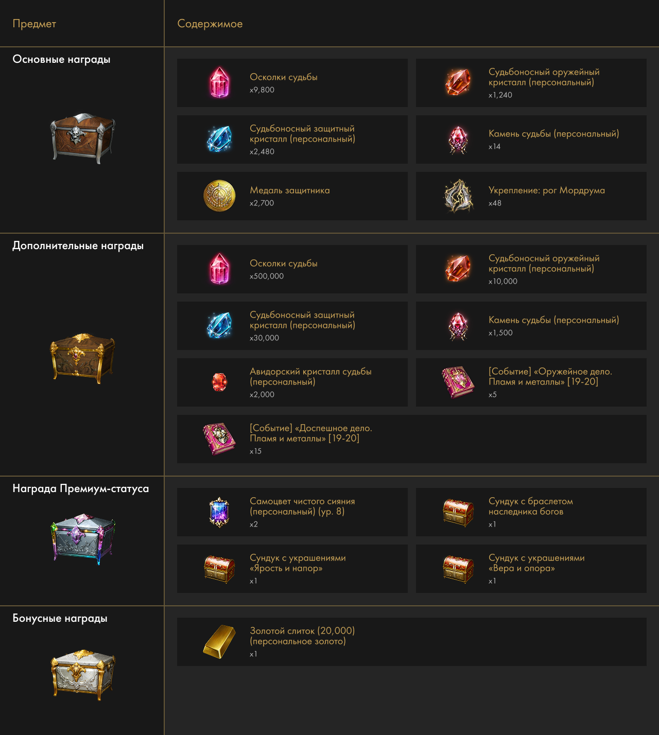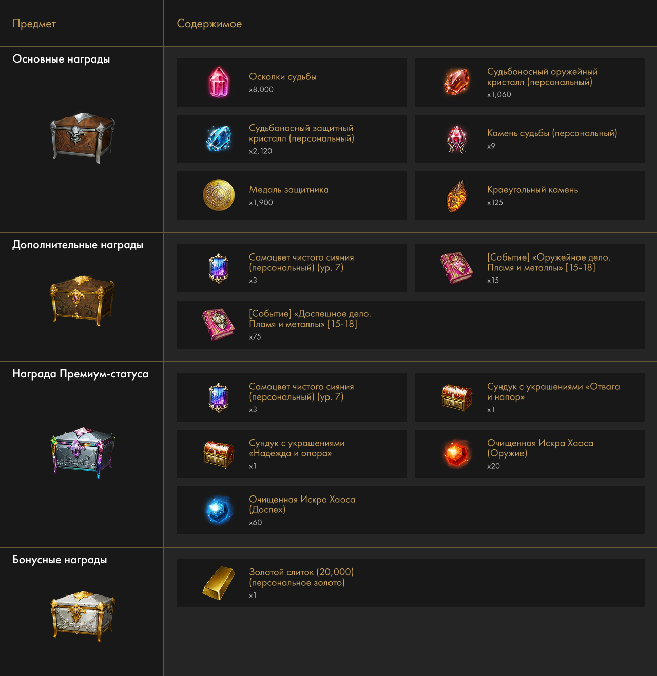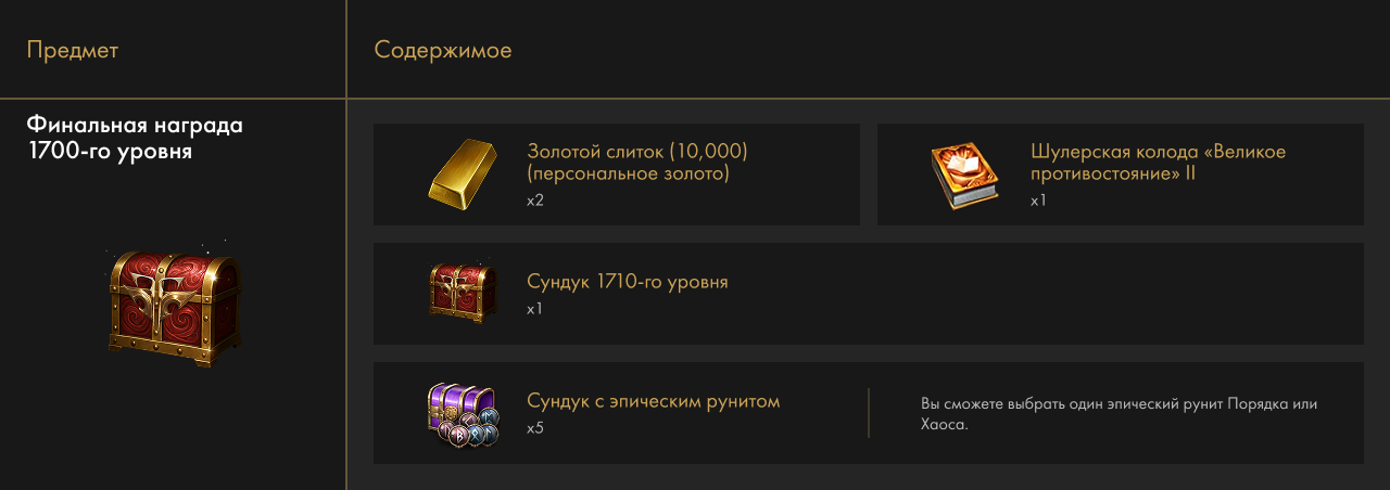 Финальная награда 1700-й уровень снаряжения