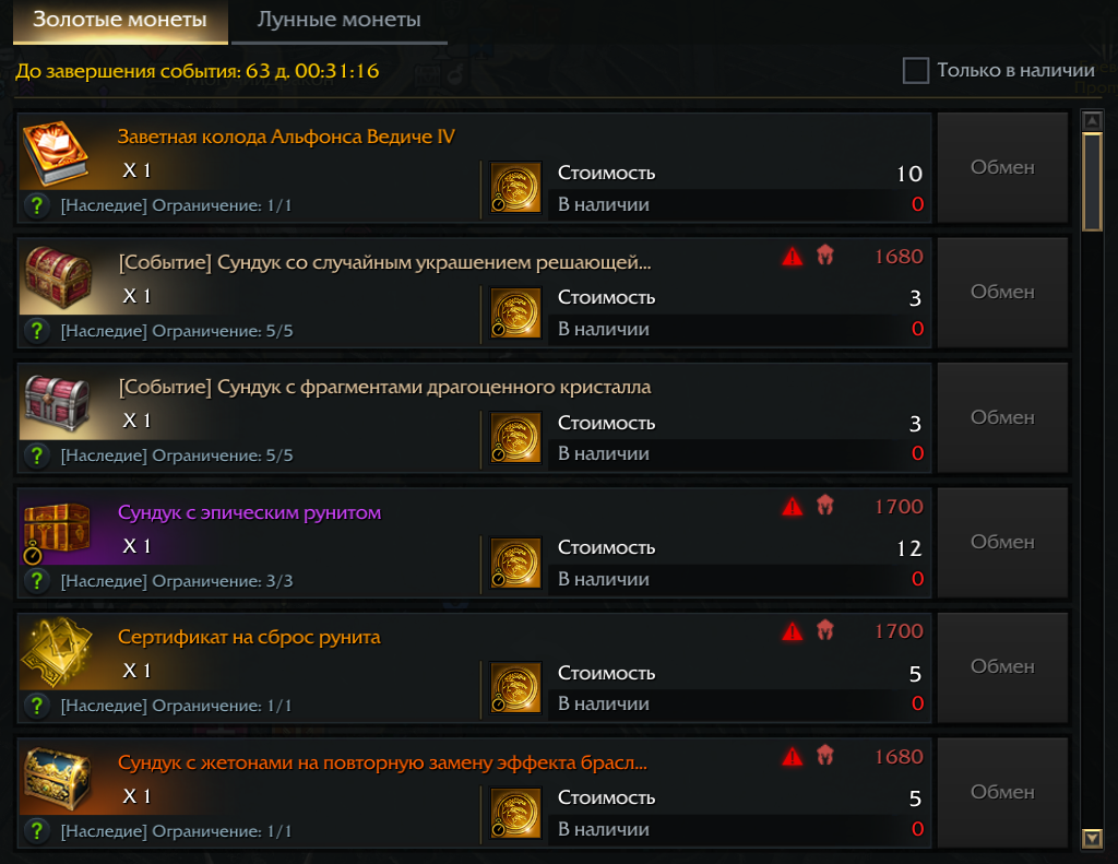 | Название рейда | Фаза | Количество монет |