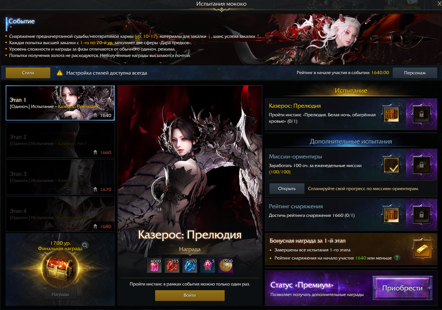 - Принять участие в событии смогут персонажи с рейтингом снаряжения от 1640 до 1701.