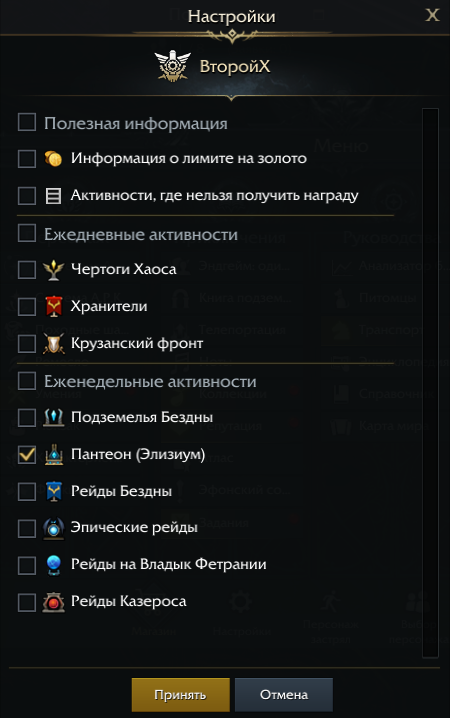 В раздел подробной информации о пройденных активностях (открывается клавишей ESC) будет добавлен статус прохождения Пантеона героев — Элизиум.