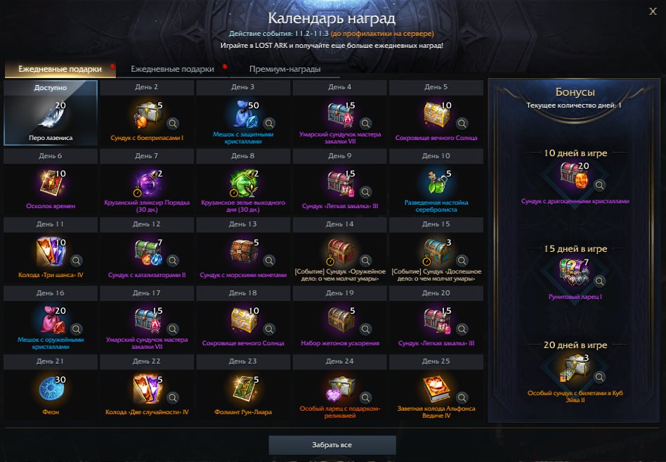 Ежедневно вы сможете забирать подарки за вход в LOST ARK в календаре наград.