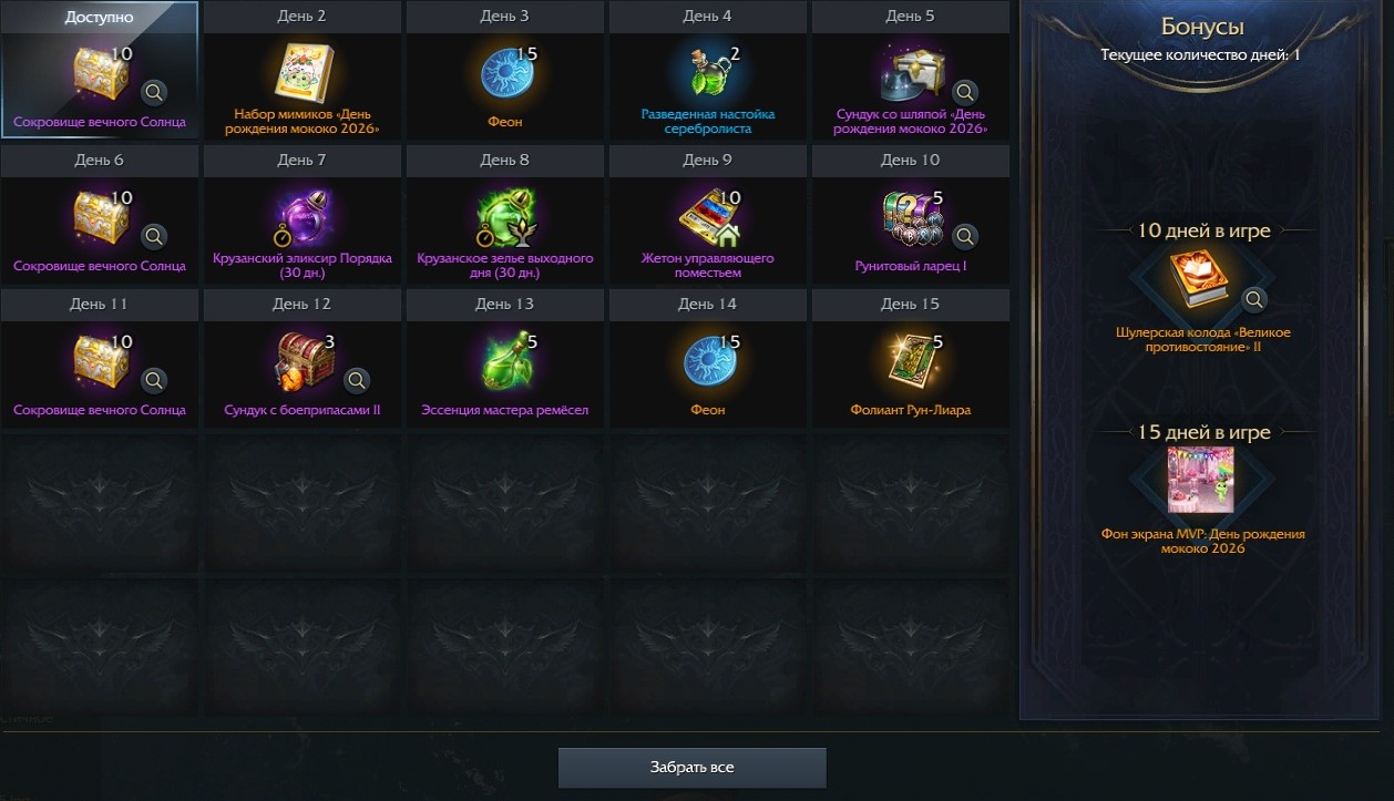 Среди наград вы найдете уникальные набор мимиков «День рождения мококо 2026» и фон для экрана MVP.