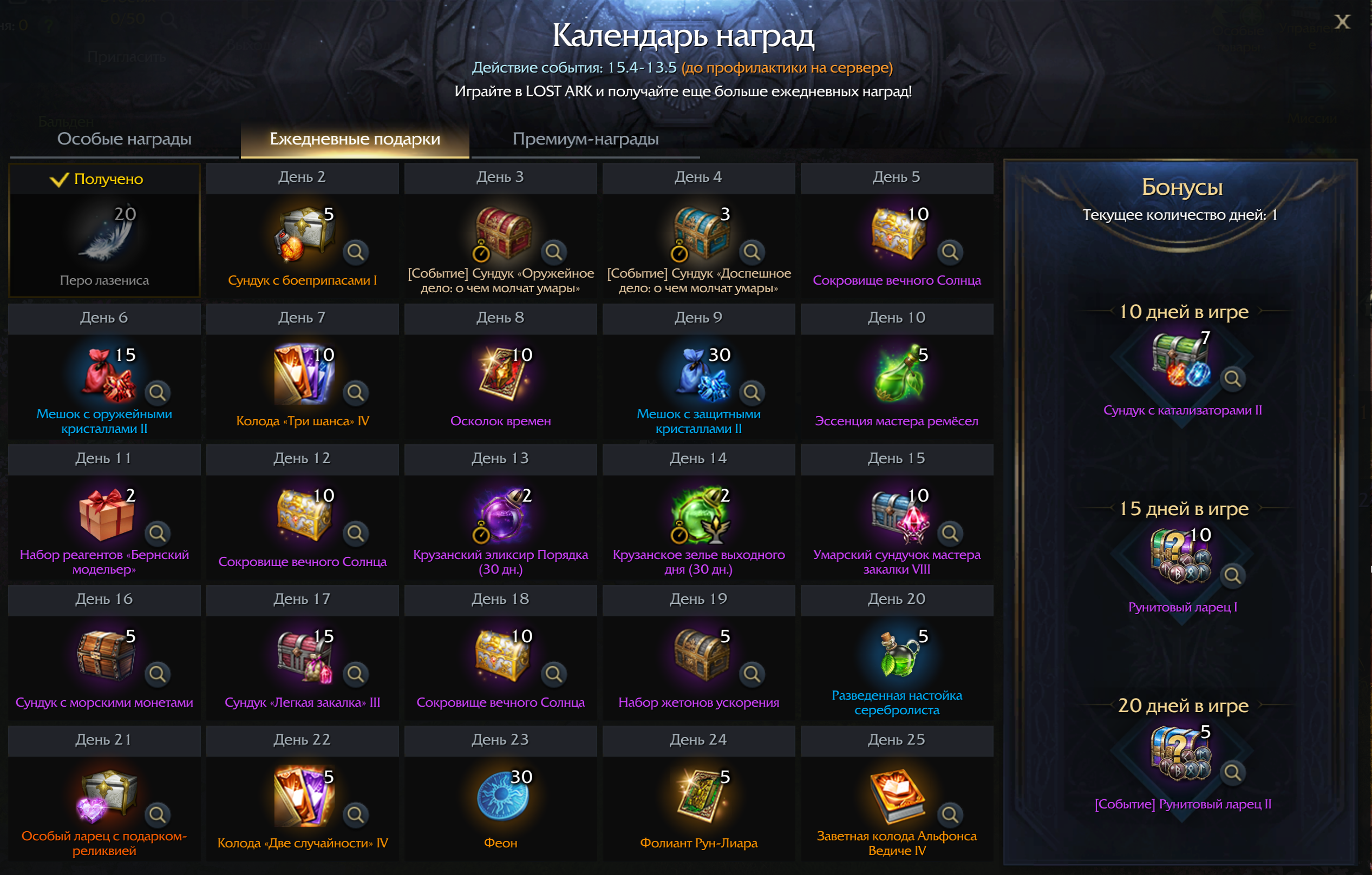 - Для получения всех наград требуется заходить в игру в течение 14 дней.