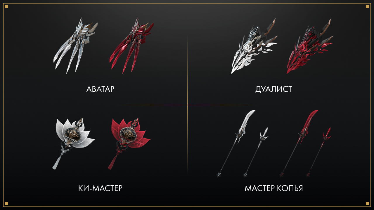 Оружие недоступно для классов Храмовница, Друид и Рыцарь-Хранитель. Образы недоступны для архетипа Рыцарь-Хранитель.