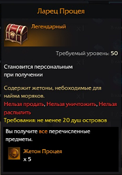 Также после сбора определенного количества душ у NPC [Обмен морских самоцветов] Торопыга в обмен на одну Слезу Гивэны вы сможете приобрести Ларец Процея (по одному ларцу после сбора 20, 40 и 60 душ островов).