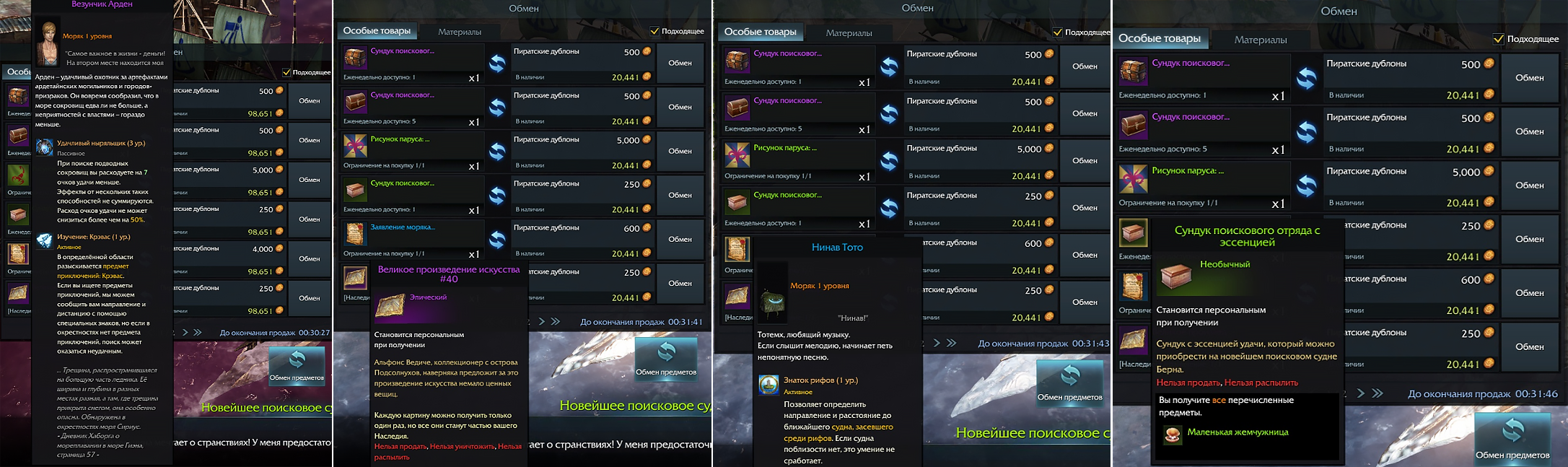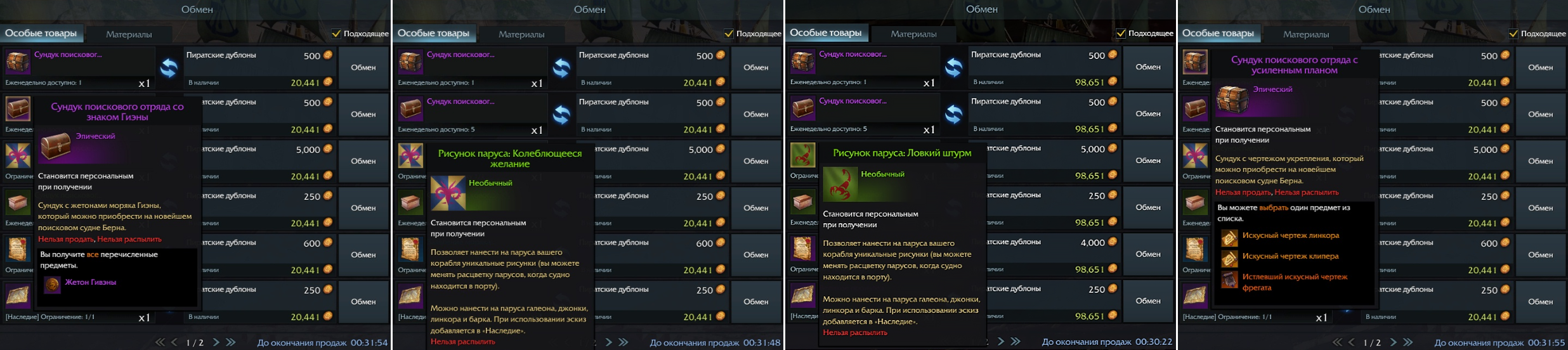 В водах Процея вам может встретиться новейшее поисковое судно Берна, останавливающееся в некоторых местах океана. В обмен на пиратские дублоны здесь можно приобрести множество полезных предметов. Кроме прочих товаров, на этом торговом корабле вы найдете еще одну уникальную реликвию для своей коллекции.