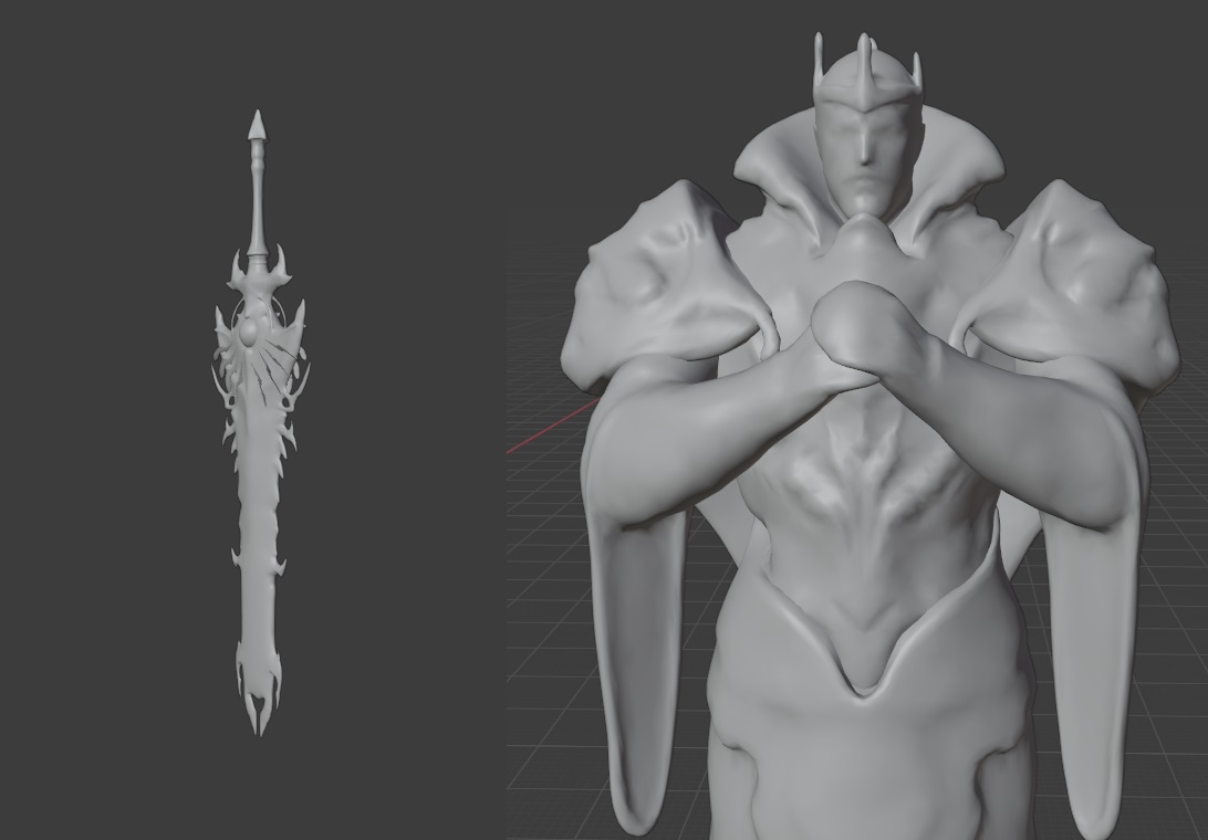 Вот так вот выглядит голая модель меча Белькруз и статуи в подземелье «Гробница Лютерана».