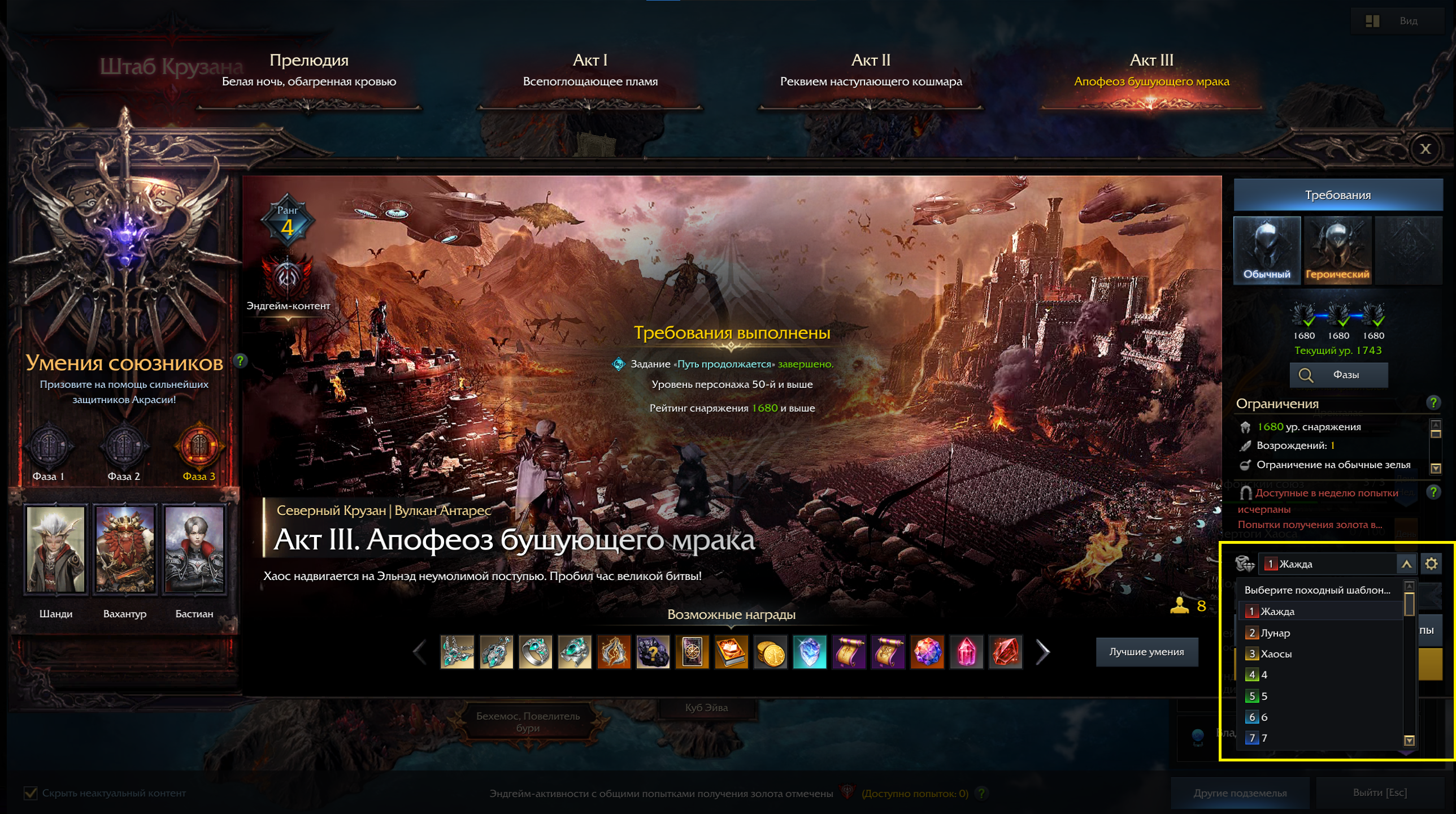 3. Выбор шаблона снаряжения (включает в себя фетранит, браслет, снаряжение, бижутерию и эликсиры).