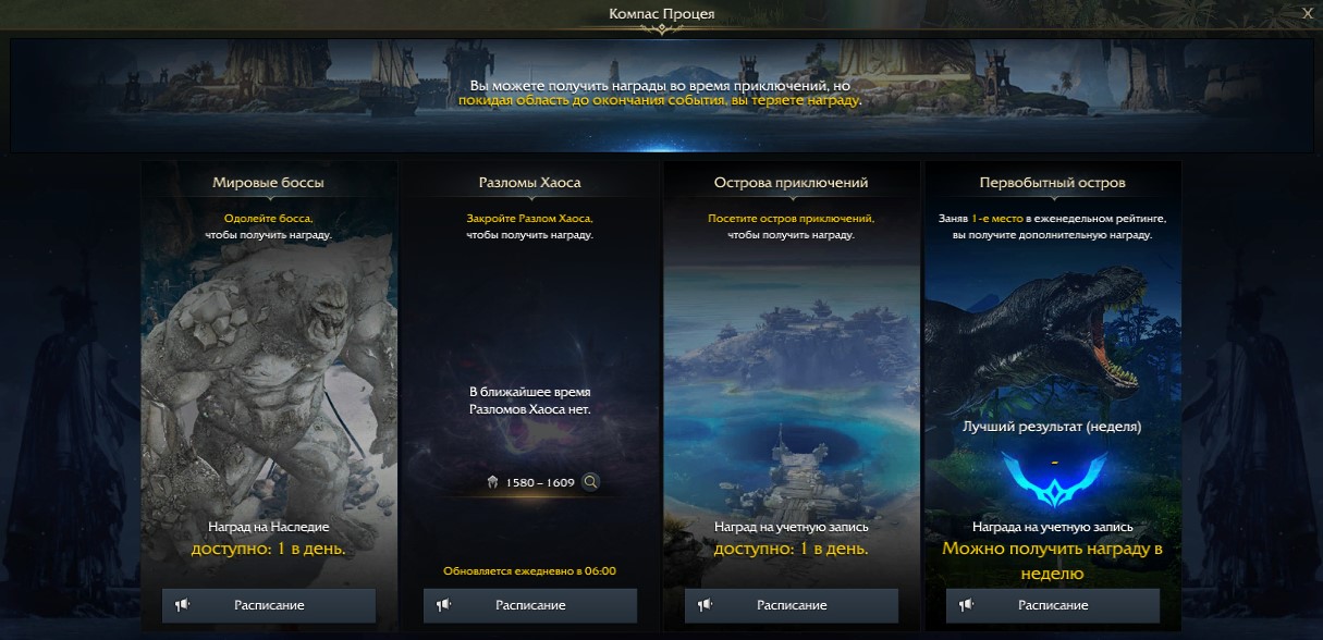 С помощью функционала Компас Процея можно отслеживать все события, которые проходят в игре.
